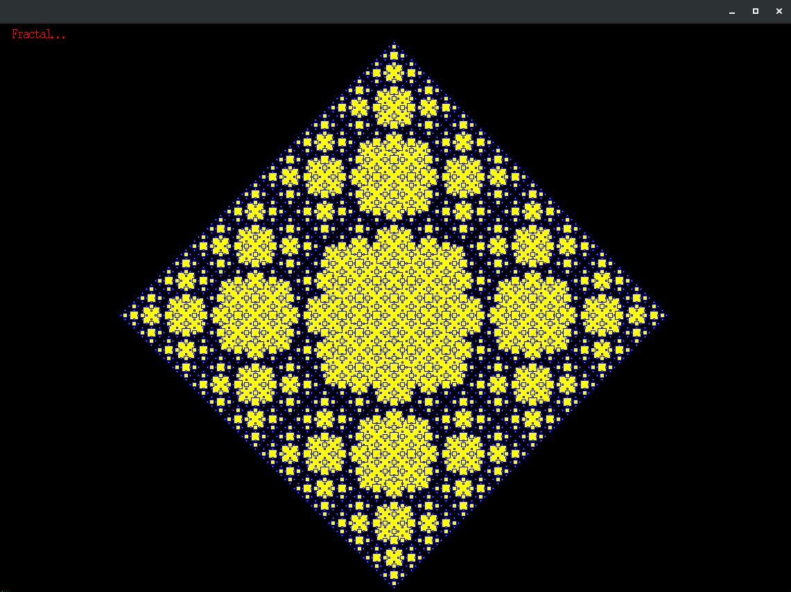 Here is example of a fractal, created with an X11Basic program, on a Linux machine. The X11Basic interpreter uses the Xlib (X-Windows) library, which most Linux GUI (Graphic User Interface) windows software, like Gnome, uses. The fractal is created in real-time, as you watch, and you can easily modify and enhance the program that generates it. (Click to enlarge image, ESC to exit image enlargement.)