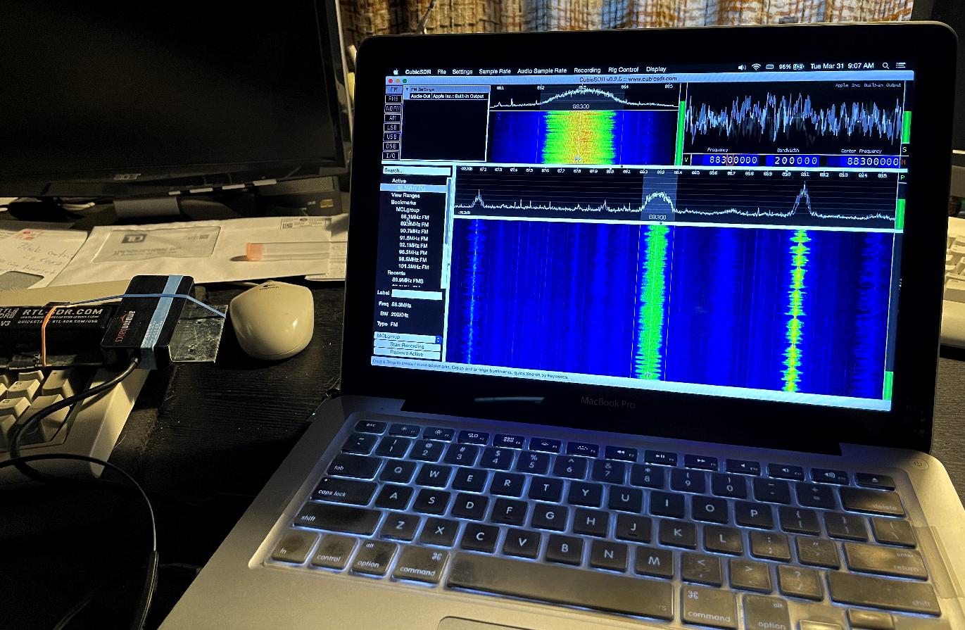[ Macbook-Pro Laptop Running SDR Radio Accessing FM Stereo Broadcast Band ]