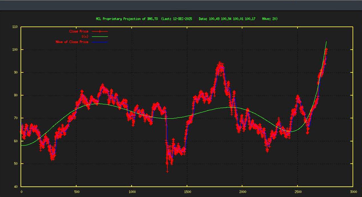 This is 10-year (Jan. 2, 2015 to Dec-18-2025, daily Open,High,Low,Close chart, and AI-mechanical forecast for BCE, the big Canadian telecom, that is recovering from absurd and terrible CRTC decisions, which a wiser government might at some point seek to correct. The share price has been hammered, but the dividend is 1.75/shr, earnings are positive, and cash-flows significant. This isn't financial advice, but it would seem that a share price of around $40 Cdn, would make more sense than a 31 to 32 ($Cdn) price. Why? The current price looks cheap. You can buy most of the entire Canadian telecom system, (which has a *lot* of fast fibre now), for less than $22 billion US, which is less than what one single data-centre in USA costs. Everybody hates telecom now, but we noticed that Starlink is getting a bit slow at times. Plus I see their little satellites falling from the sky, every so often. In a low-interest rate environment, leveraged telecoms with big cash-flows, and fast interconnection technology, seem to be awfully cheap. If anything happens to the satellites, the telecoms - with both fibre, copper, and local wireless - will go back to owning all the digital world. FD: We bought a little bit of BCE, so yah, I am talking my position, but I am also putting my money where my mouth is. :) (Click to enlarge image, ESC to exit image enlargement.)